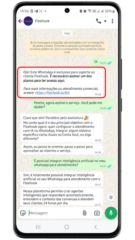 Com o Flexhook, é possível criar um atendimento no WhatsApp onde apenas o seu cliente pagante tem acesso à IA.