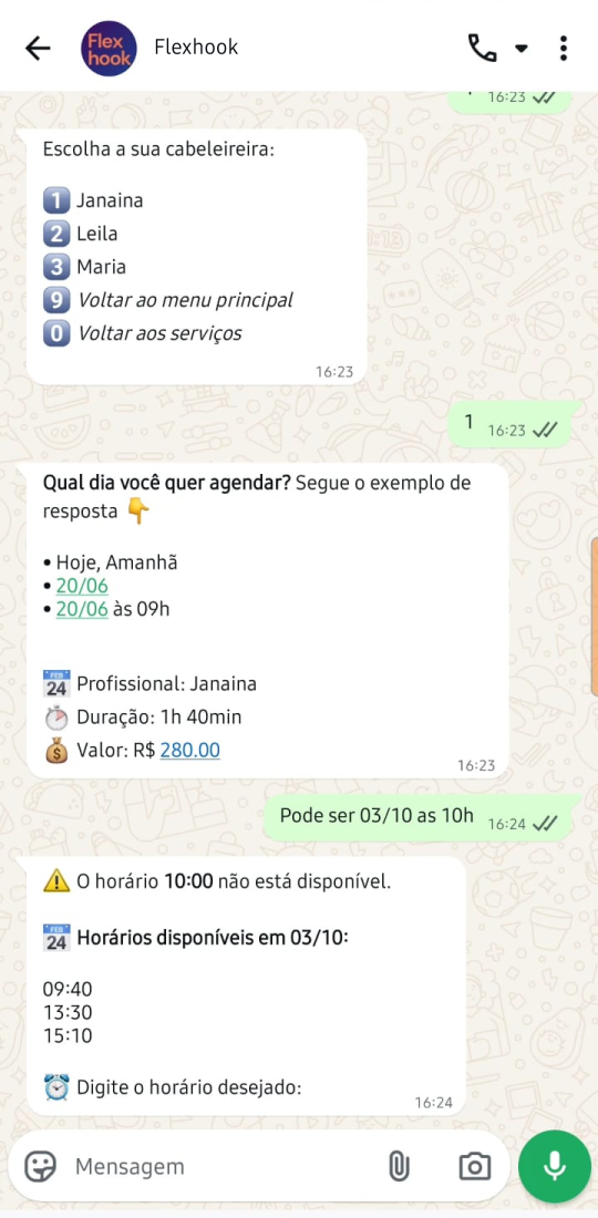 Fechou um horário agora? Sem problema! O Flexhook atualiza automaticamente e não exibirá esse horário para os futuros clientes.